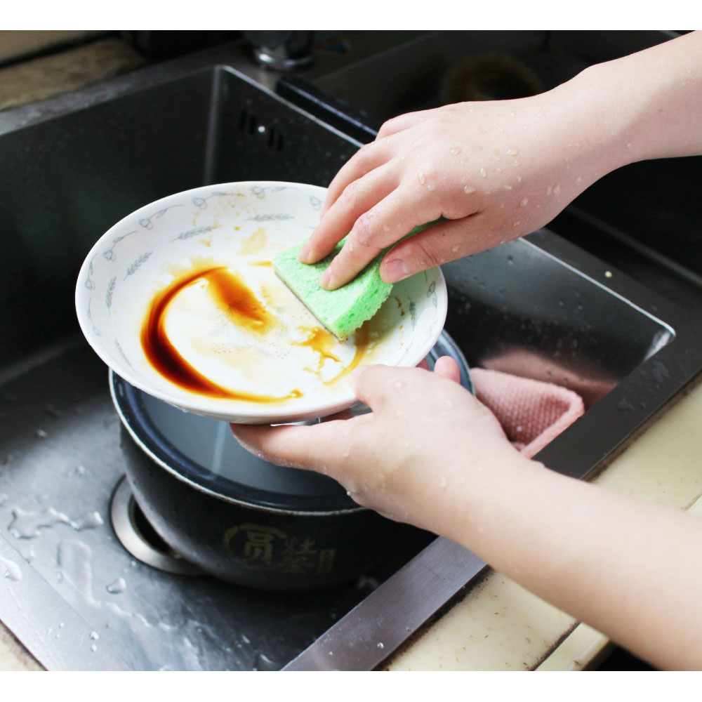 Sponge is 100% cellulose sponge material which is gentle and non-stick oil, strong cleaning capability, good for dishes, kitchen utensils, easily to be dry which keep bacterial no atomsphere to live.